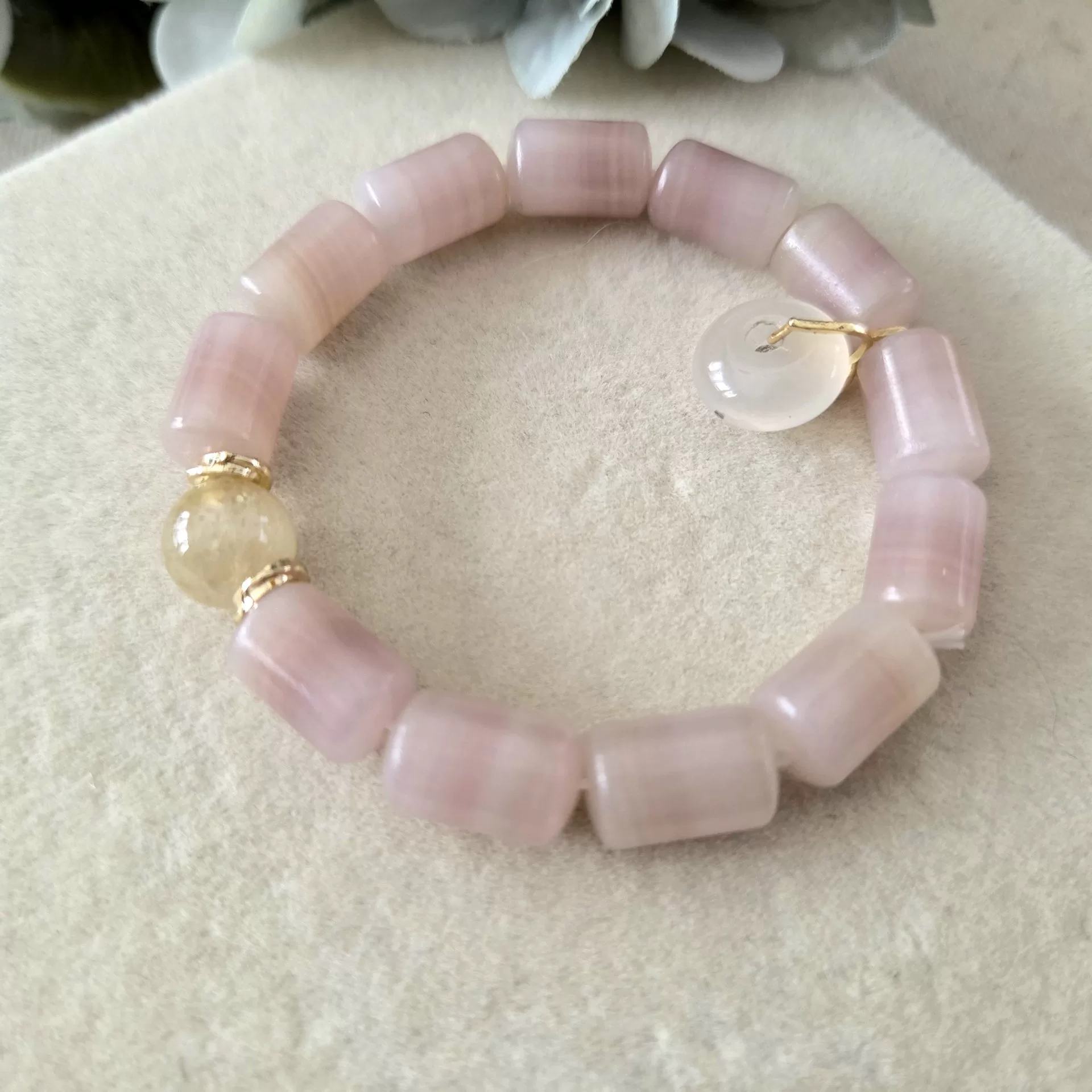Pink Jade Lulutong Bracelet with FeiHong Agate Charm