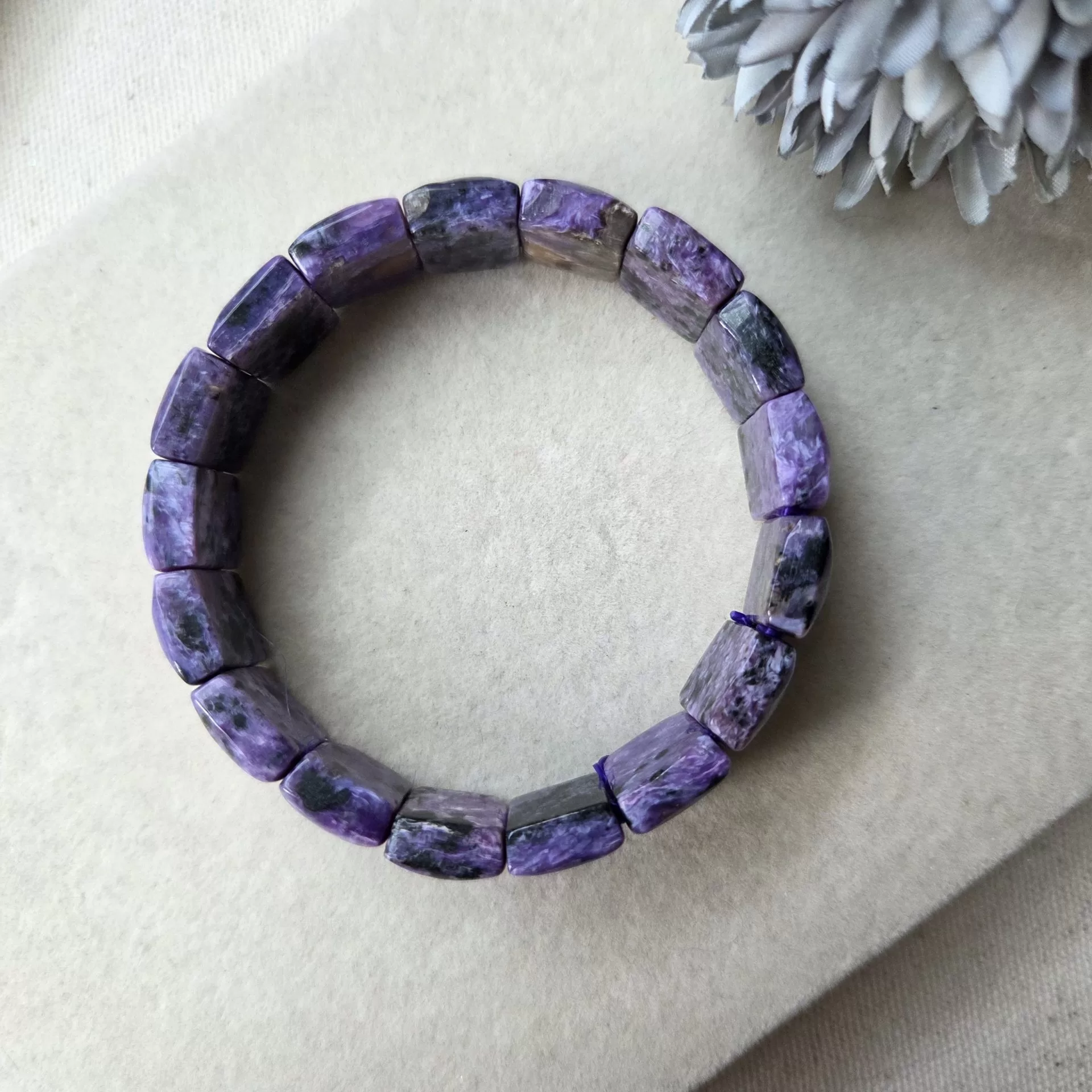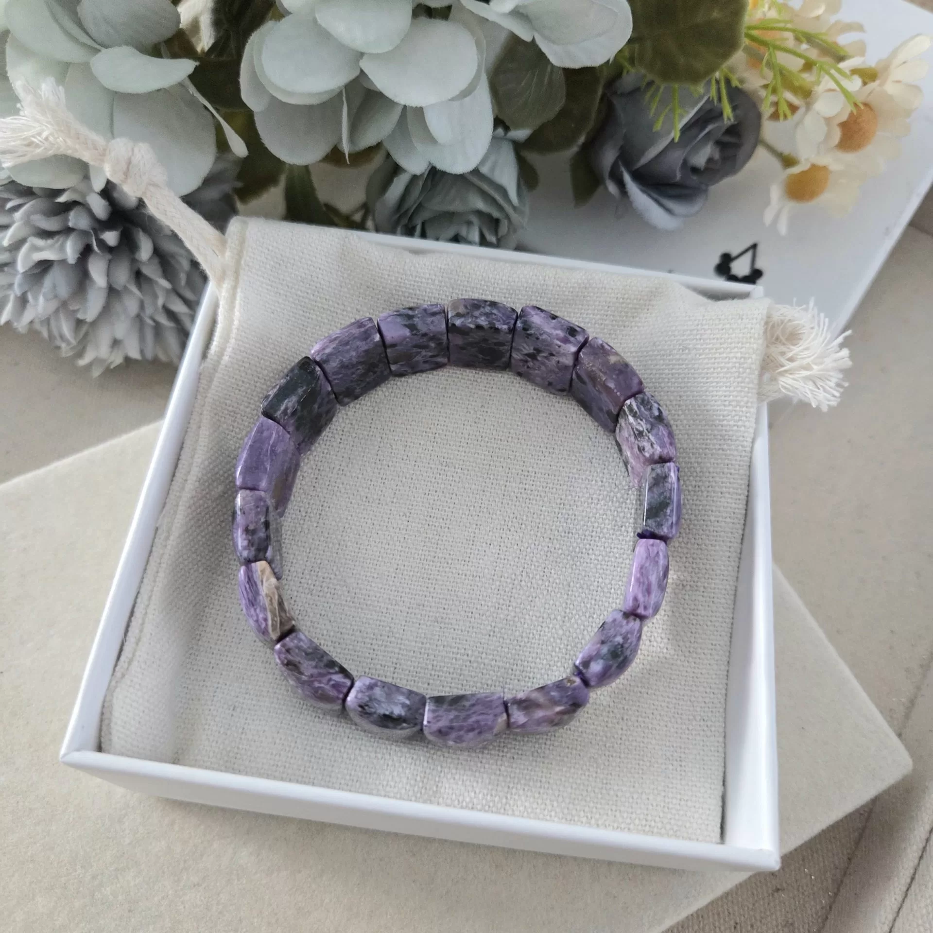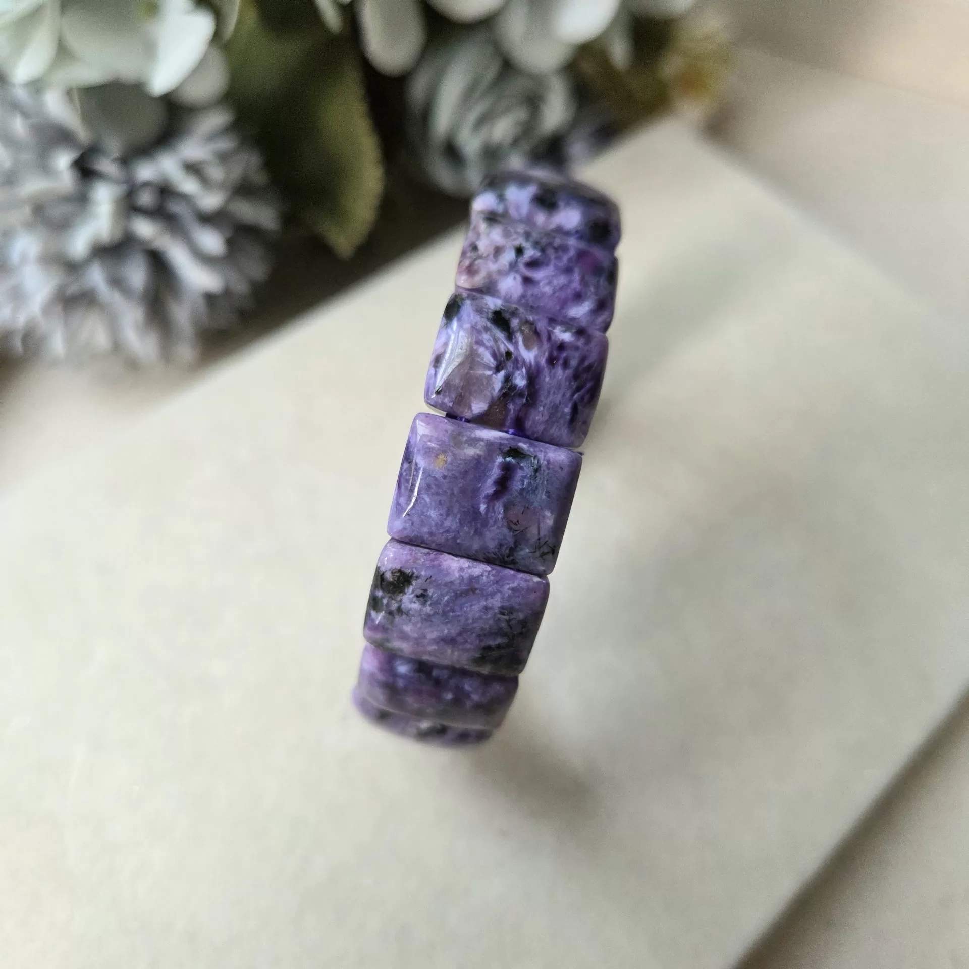 A charoite bracelet of profound resonance and layered elegance, crafted in the distinctive papan (rectangle bead) shape, curated for those seeking emotional healing, spiritual clarity, and a collector’s treasure of rare distinction.