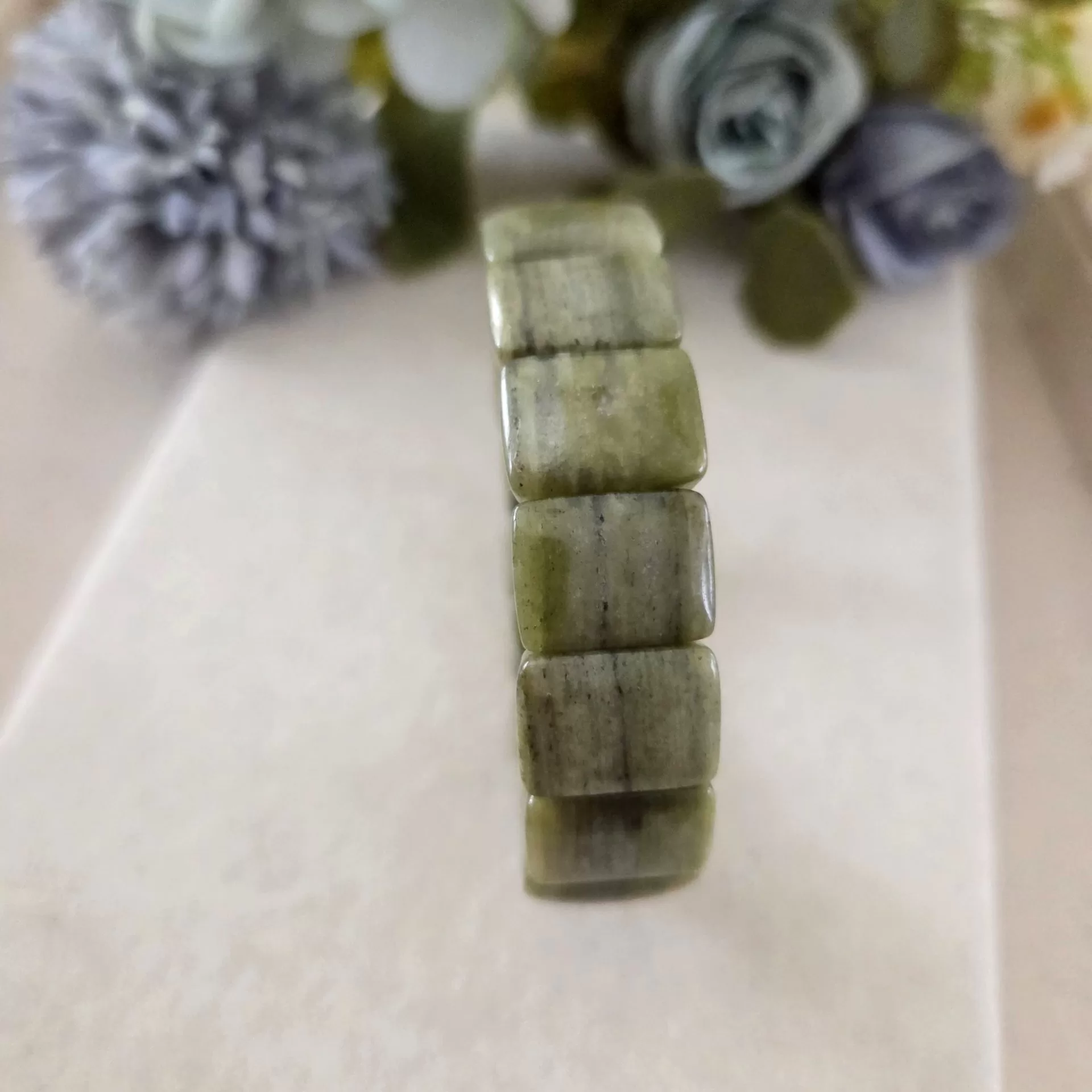 A green phantom bracelet of layered serenity and renewal, crafted in the distinctive papan (rectangle bead) shape, curated for those seeking emotional healing, clarity, career advancement, and purposeful transformation.