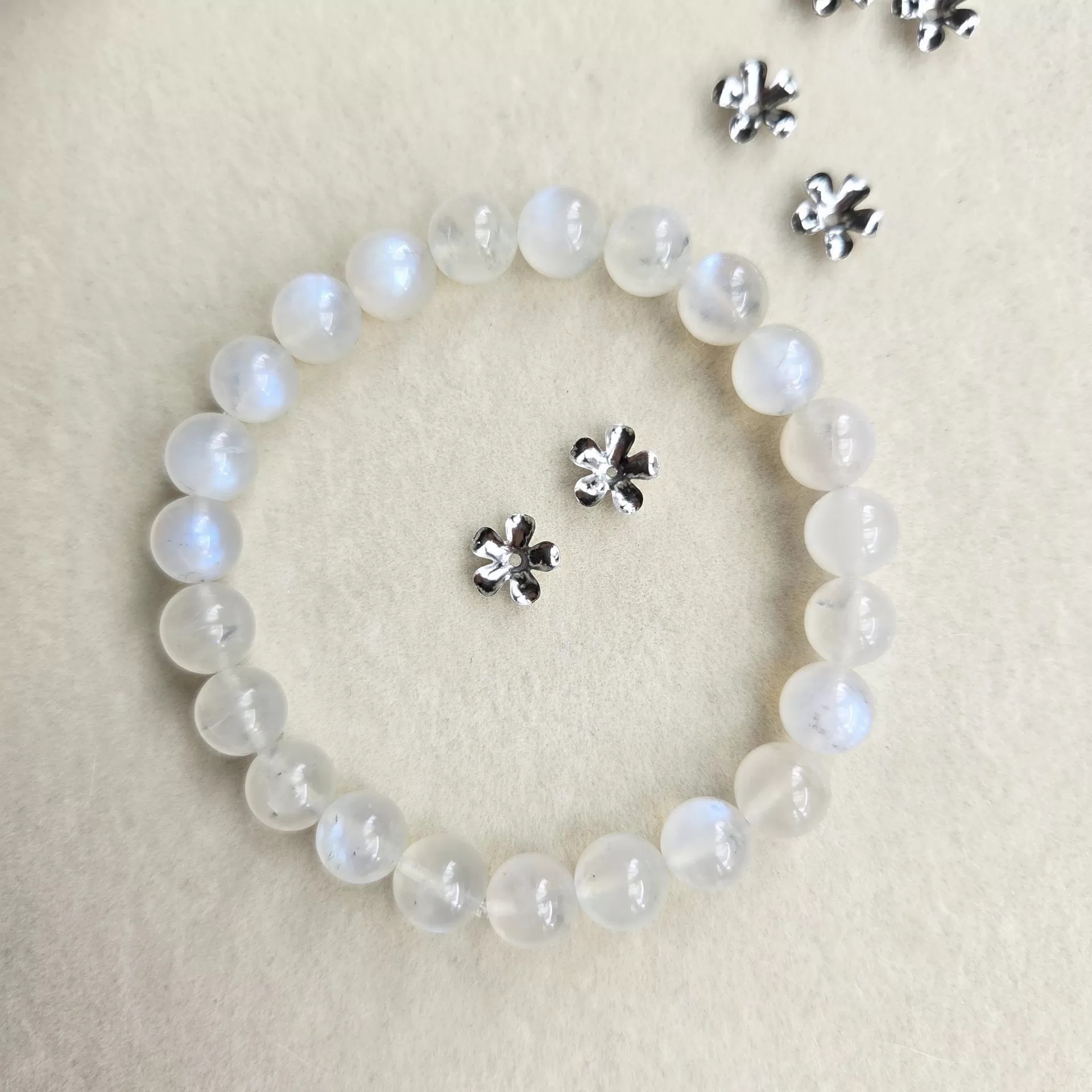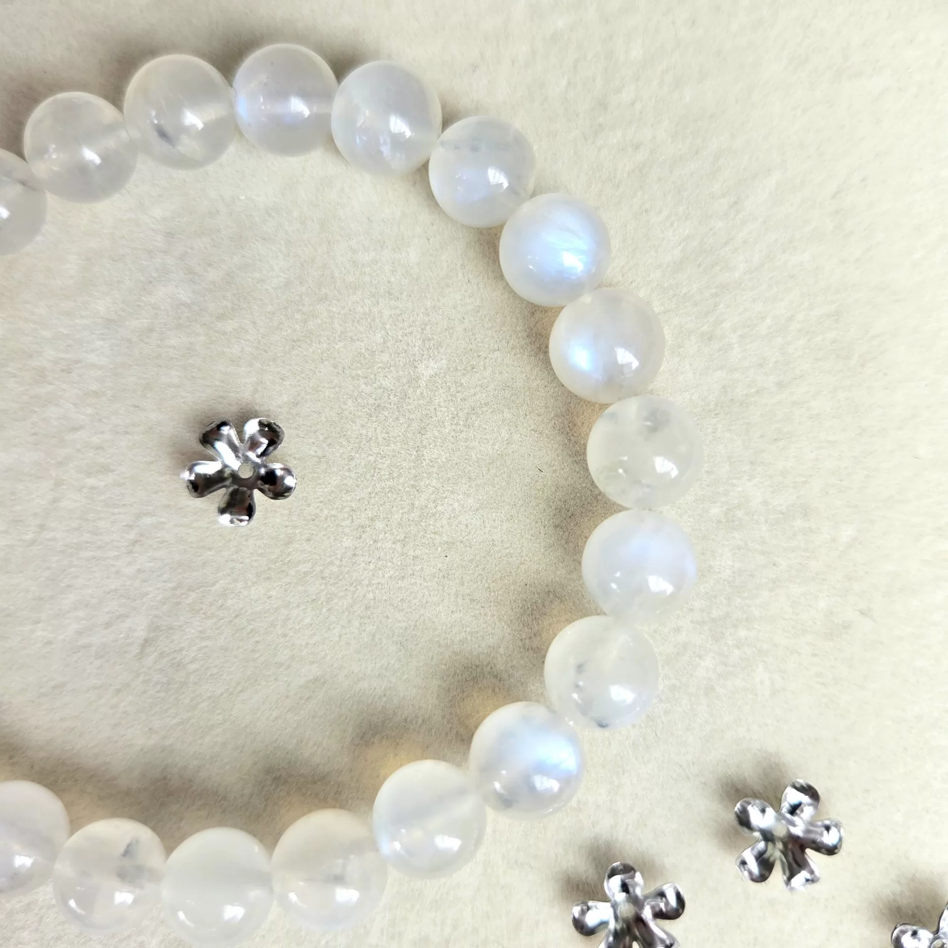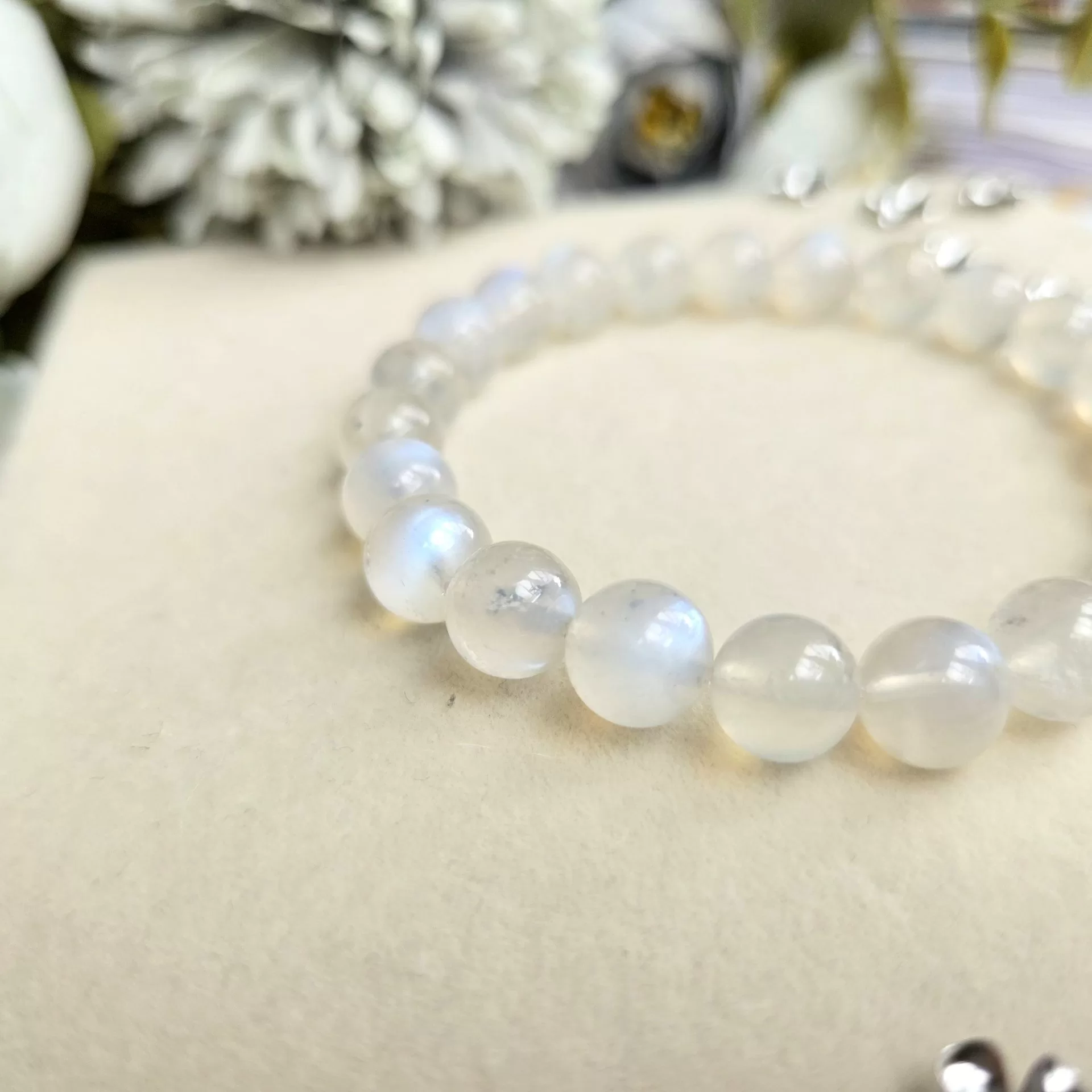 This Moonstone Bracelet radiates the mystical glow of the moon, symbolizing intuition, balance, and new beginnings. Known for enhancing inner wisdom, Moonstone guides its wearer toward clarity and self-discovery while fostering emotional harmony and stability. Its gentle energy brings a sense of calm, making it a powerful companion through times of transformation and growth. With its luminous sheen reflecting the soft glow of moonlight, this bracelet serves as a reminder of life’s ever-changing cycles and the beauty of embracing new opportunities. Wearing moonstones is believed to help reduce stress, and encourage overall well-being.
